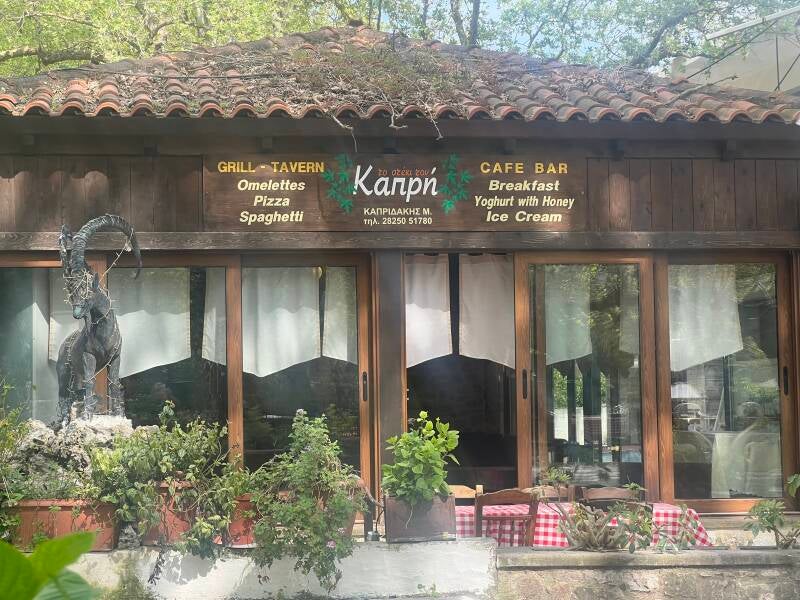 Takaisin tulimme mm. Rethymnonin kautta ja pysähdyimme Vryses nimisessä kylässä juomassa frapet ja tuoremehut sekä otettiin tsatsiki, ranskalaiset ja talon makkarat.